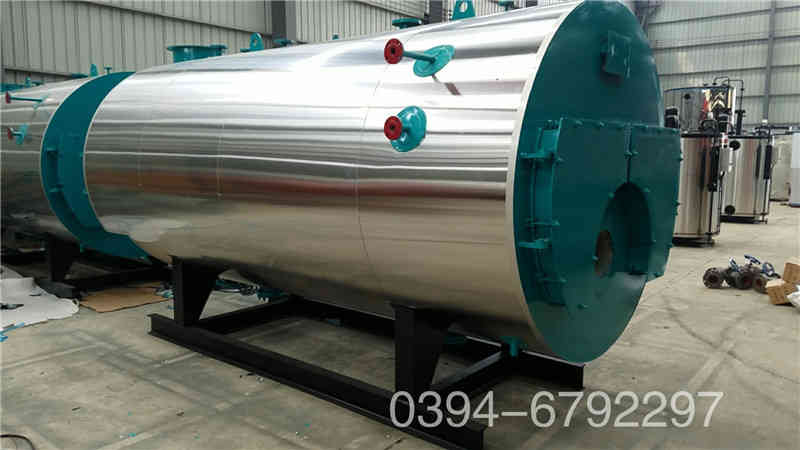 WNS系列蒸汽锅炉是锅壳式、波形炉胆、螺纹烟管型节能锅炉,采用三回程湿背式结构,燃料在炉胆内燃烧产生高温烟气,经回燃室→对流管束→前烟箱→第二对流管束→后烟箱→常压冷凝器→烟囱排入大气。炉胆在设计中采用波形炉胆,能较好的与火焰形状相适应,保证了燃烧充分,波形炉胆降低了炉胆刚性,减小了变形应力,可保证制造质量。同时在回燃室安装了检查孔或弹簧式防爆检查门,本体上设置的人孔有利于锅炉的安全运行及维修。锅炉安全控制严格按照NB/T47034-2013《工业锅炉技术条件》和有关规程规定执行。